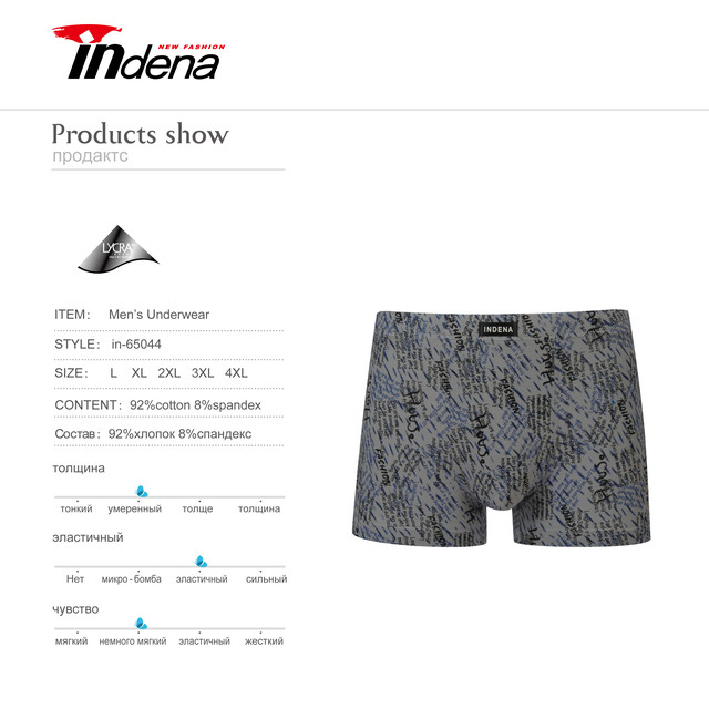 Чоловічі Боксери Стрейчеві Марка INDENA АРТ.65044 — фабричне якість, наймодніший колір і крій. Цей варіант підійде для тих чоловіків, які високо цінують комфорт, практичність і стиль. Вони вільно сидять, не сковують рухи, а також добре носяться з вузькими штанами. Мінімальне замовлення — 6 упаковок.