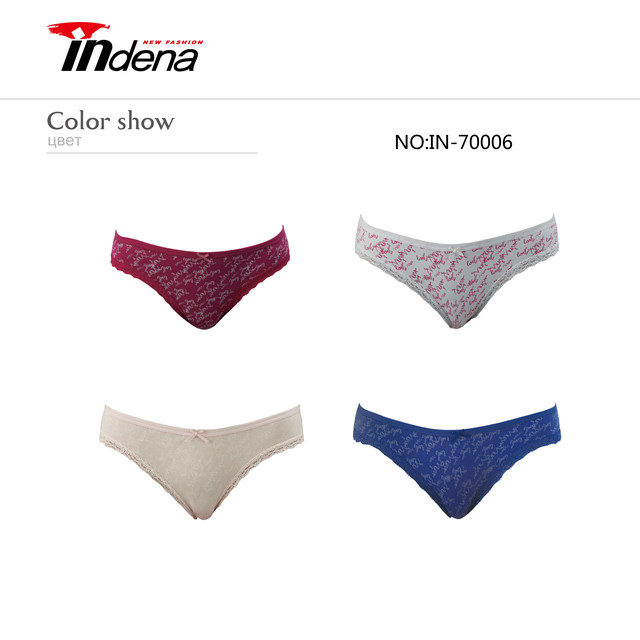 Жіночі труси стрейчеві марка «INDENA» Арт.70006 — практичне жіноча білизна. Для виготовлення даної моделі використовується натуральна тканина, від якої на тілі не залишається висипань і алергічних реакцій. Виріб еластично і м'яко лягає до тіла. Цікавий принт додає пікантності трусам.